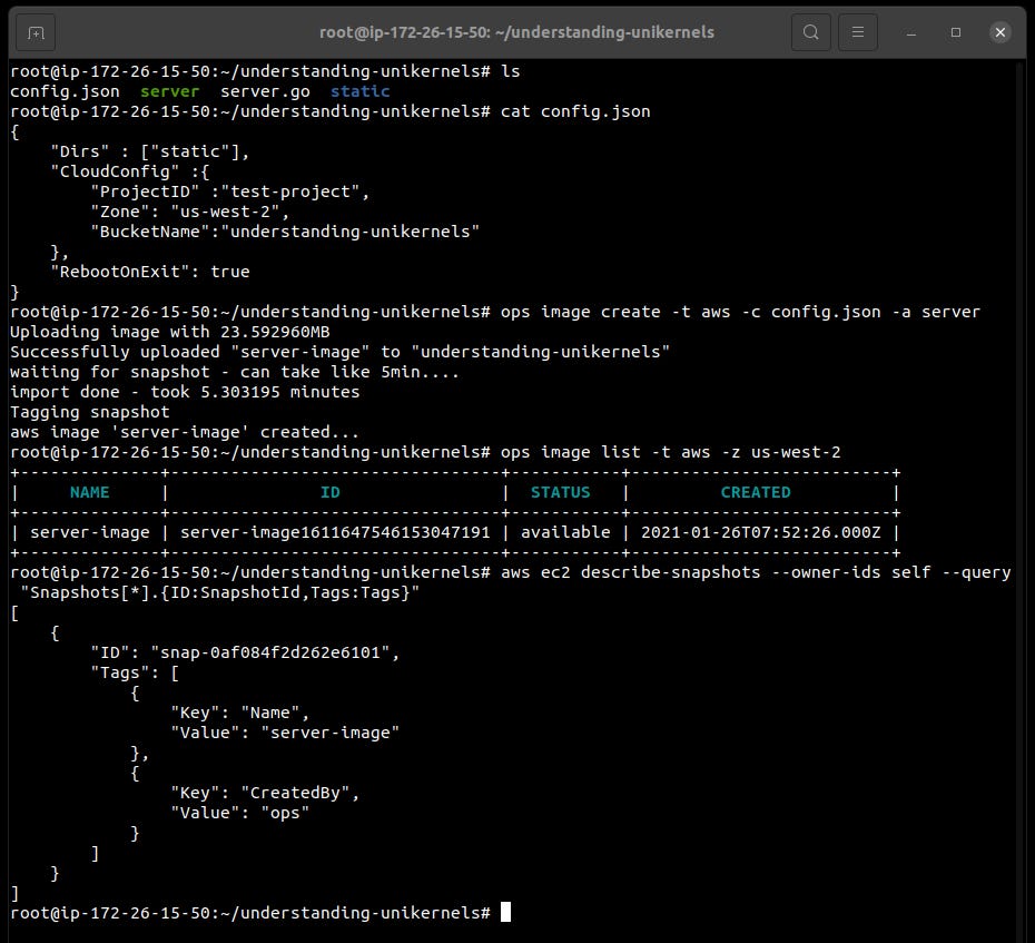 , we can now create and list out the unikernel machine-image(s) on our AWS account.