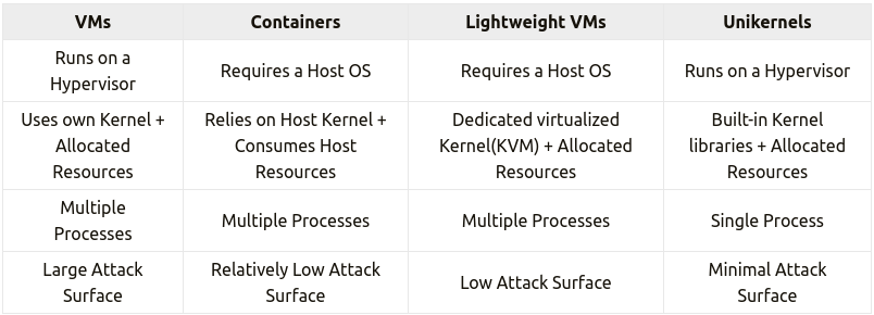 VMs vs. Containers vs. Lightweight VMs vs. Unikernels
